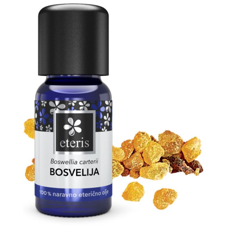 Bosvelija pomaga blažiti težave z dihali. Zaradi svojega intenzivnega in bogatega vonja ter nizke, počasi hlapne note je pomembna komponenta pri izdelavi domačih parfumov. Eterično olje bosvelije je cenjeno tudi v kozmetičnih pripravkih, saj vlaži, neguje, tonizira in obnavlja zrelo, suho in občutljivo kožo ter pomirja in mehča grobo in razpokano kožo.