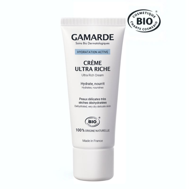 Termalna voda Gamarde-les-bains je obogatena z minerali, ki blagodejno delujejo na izjemno suho in občutljivo kožo. Zaradi njenih dermoprotektivnih, pomirjujočih in proti-dražilnih lastnosti, je ultra bogata vlažilna krema primerna za nego izjemno suhe in razdražene kože.
