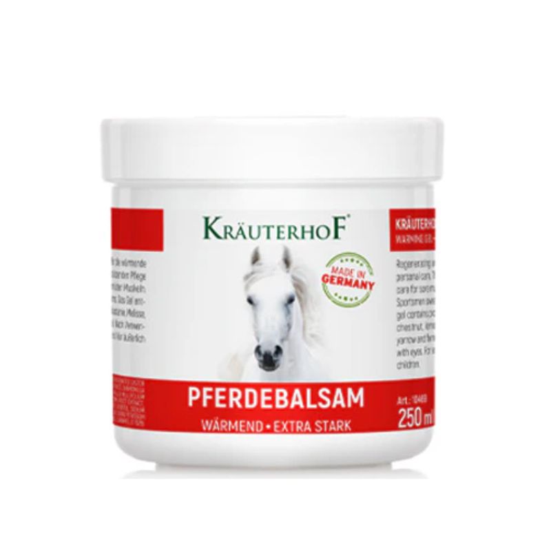 Konjski grelni gel oz. konjska krema s toplotnim učinkom blagovne znamke Krauterhof je že več desetletij med najbolj priljubljenimi konjskimi geli v Evropi. Odličen je za masiranje preobremenjenih, napetih in poškodovanih mišic, kot tudi za osvežujočo in poživljajočo nego utrujenih in preobremenjenih sklepov.