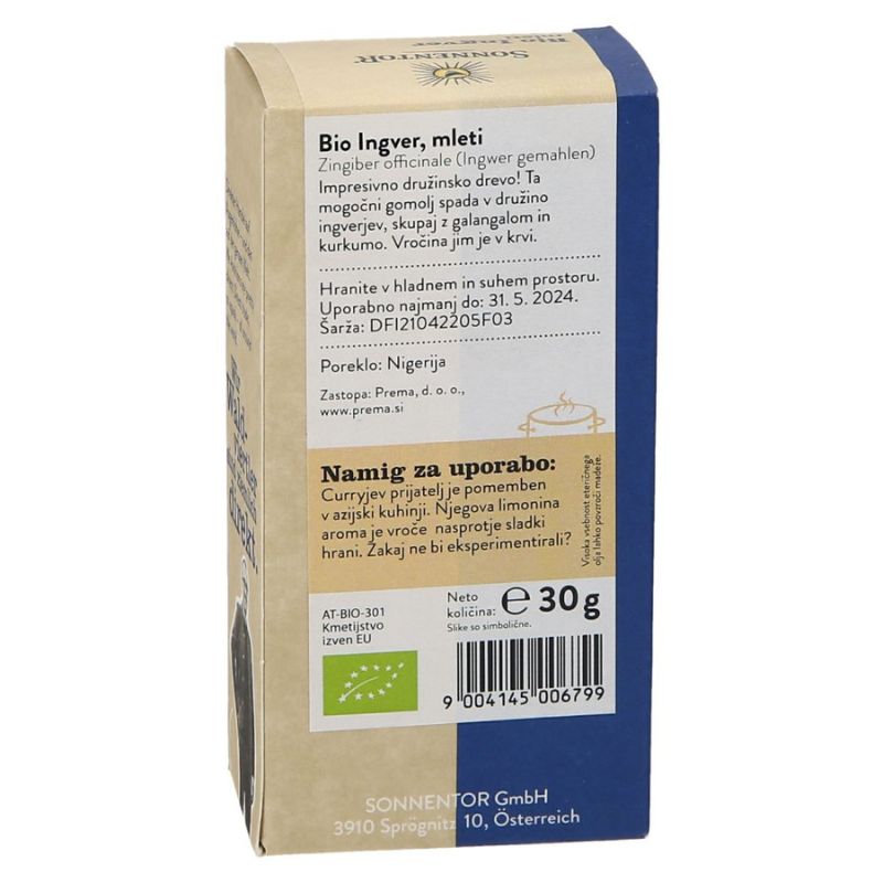 Ingver*. *Iz nadzorovane ekološke pridelave; nadzorno mesto: AT-BIO-301. Kmetijstvo izven EU. Država porekla: Nigerija.